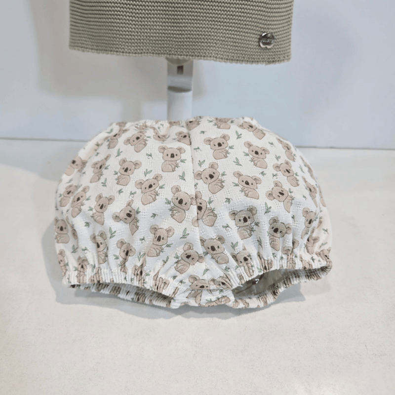 Conjunto jersey de punto braguita tela estampada koalas verano. Conjunto de verano para bebé compuesto por jersey de punto suave y braguita de tela estampada con koalas. Una combinación fresca, dulce y muy cómoda para los días cálidos.