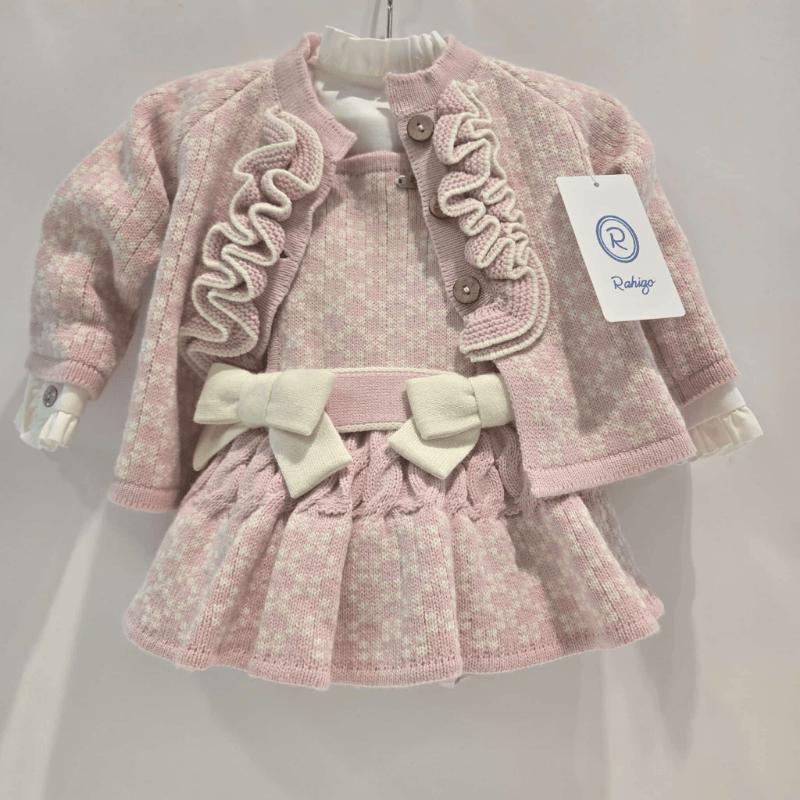 Conjunto niña tres piezas Rahigo rosa beige otoño invierno.