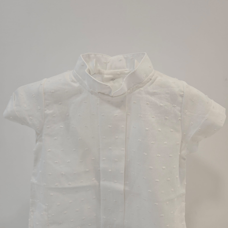 El pantalón corto, cómodo y bien estructurado, acompaña el movimiento del niño sin perder forma. Su confección precisa y su ajuste equilibrado lo convierten en una prenda versátil para el día a día o para momentos especiales.