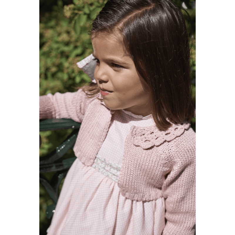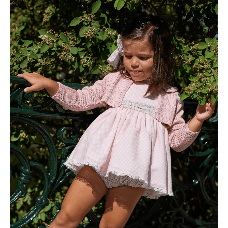 Este jesusito de La Martinica es una pequeña obra de encanto veraniego. El cuerpo luce un clásico cuadro vichy que aporta frescura y un aire atemporal, mientras que la braguita a juego sorprende con un delicado estampado de flores liberty, creando un contraste suave y lleno de personalidad. La cinta de la cintura, confeccionada en la misma tela floral, une ambos mundos con una armonía perfecta. El diseño mantiene la esencia artesanal de la firma: cortes cuidados, detalles que enamoran y un estilo que viste a las pequeñas con elegancia sin renunciar a la comodidad. Ideal para los días luminosos de primavera y verano, para paseos, celebraciones o simplemente para disfrutar de la temporada con un look irresistible. Un conjunto que respira dulzura, tradición y ese encanto especial que solo La Martinica sabe crear. Chaqueta no incluida, preguntar disponibilidad!!!
