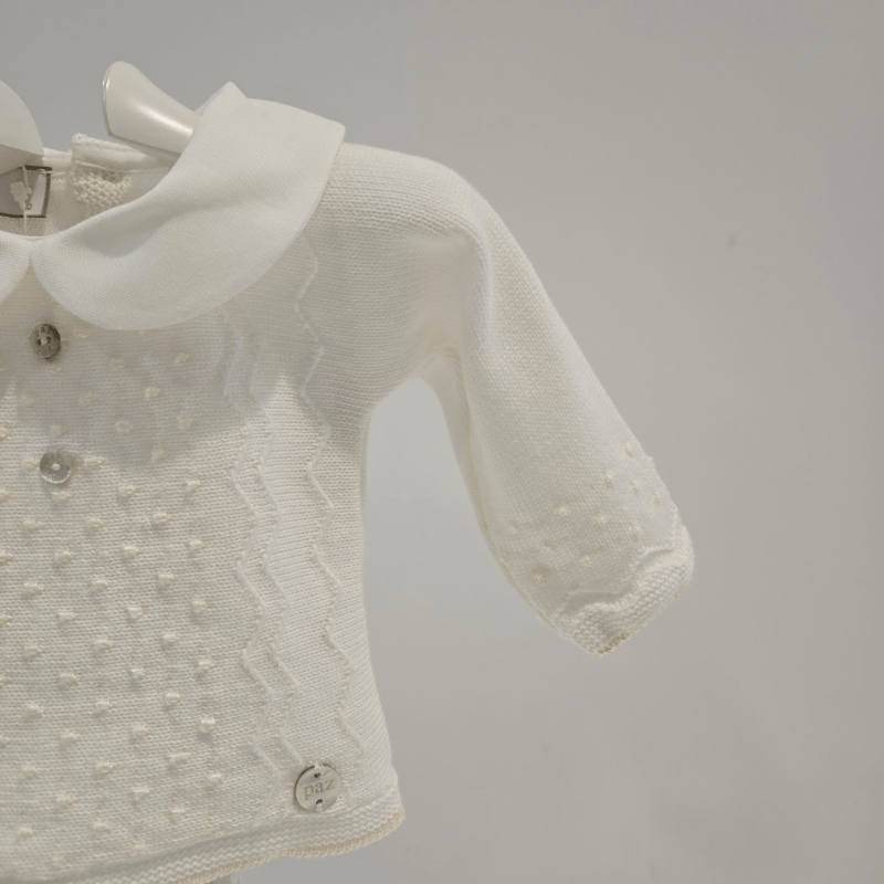 Ideal para los días frescos, este diseño combina tradición y funcionalidad, ofreciendo una prenda envolvente, fácil de vestir y perfecta para regalar o acompañar los primeros paseos del recién nacido. de la firma Paz Rodríguez y por supuesto hecha en España con amor y mimo.
