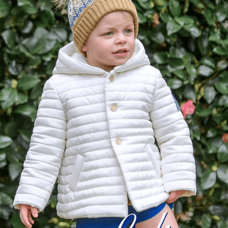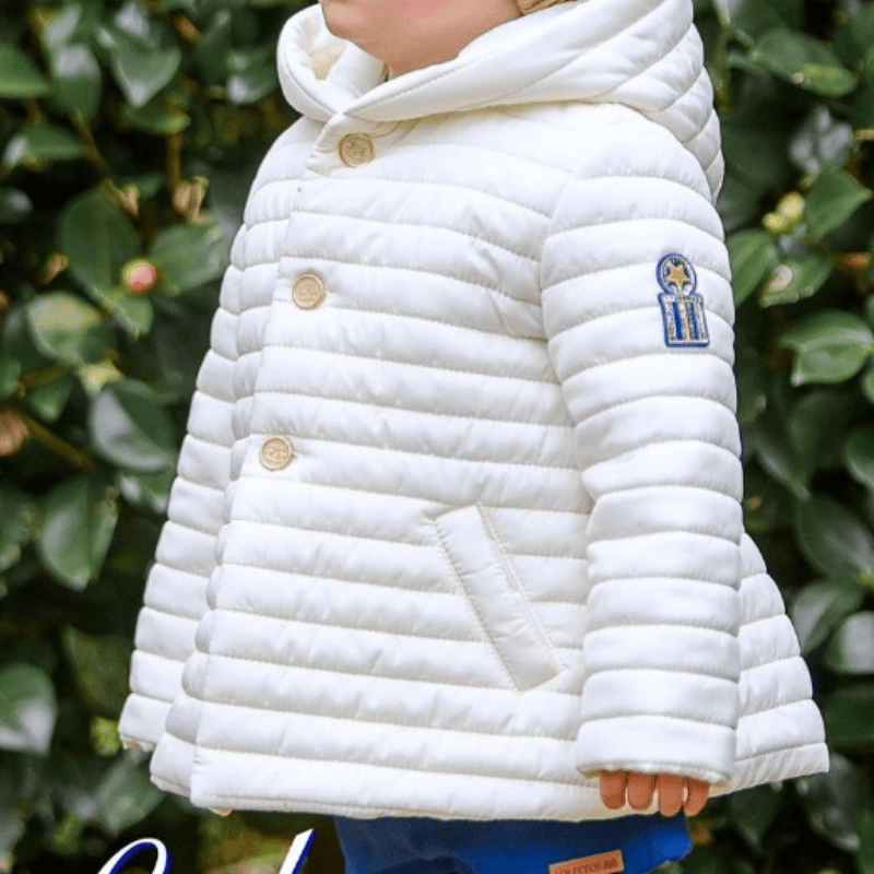 Parca guateada con forro de pelo Lolittos invierno. Elegante abrigo infantil en tono crema, con suave forro de pelo en su interior para una calidez excepcional. Su diseño acolchado, capucha envolvente y detalles cuidados lo convierten en la prenda ideal para esta temporada otoño invierno de la firma Lolittos.
