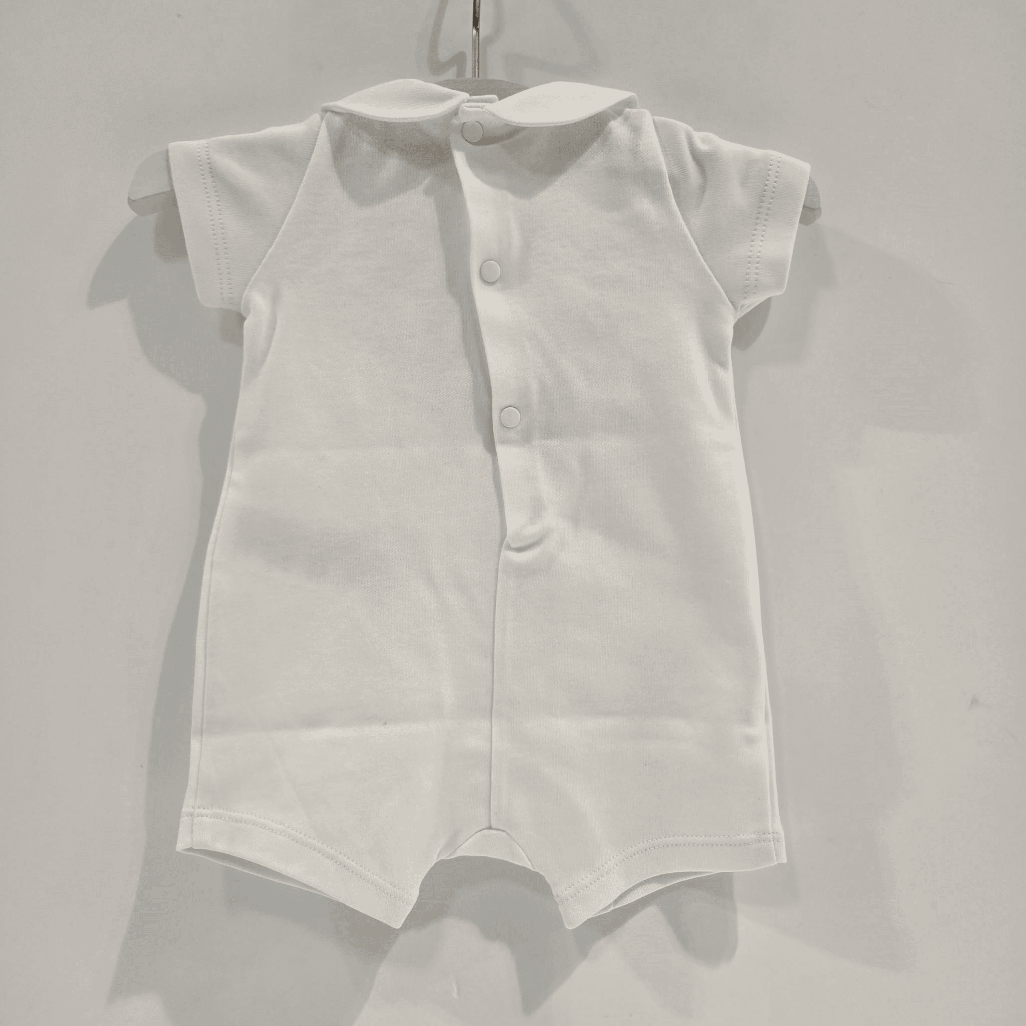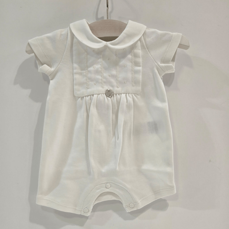 Pelele corto pechera bordada niño Paz Rodríguez verano.