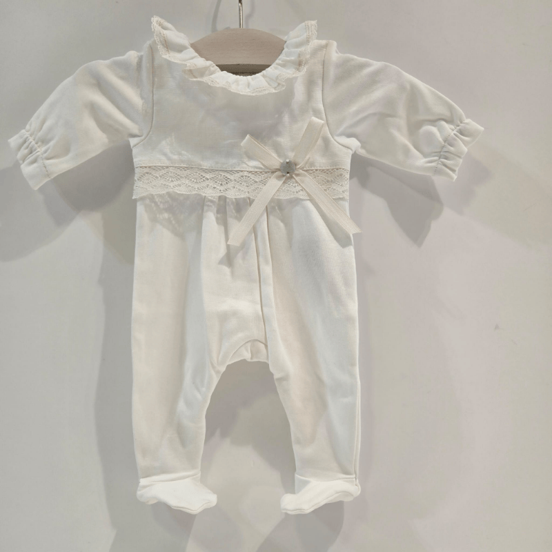 Pelele largo con pie lazo y puntilla Paz Rodríguez verano