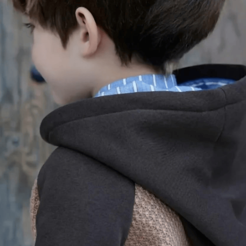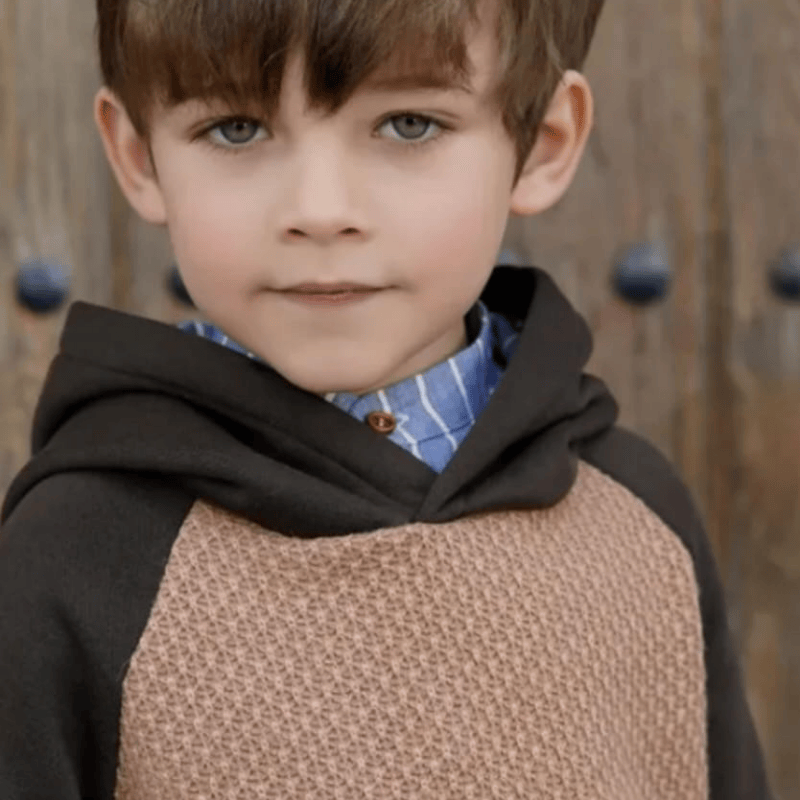 La sudadera Niño camel con chocolate de la colección Venus de Noma Fernández es una prenda envolvente y sofisticada para el otoño invierno 2025/26. Confeccionada en tejido waffle color camel en el frontal y capucha, y mangas en tono chocolate liso, combina texturas con armonía y estilo. Su bolsillo canguro aporta funcionalidad y encanto, mientras que el interior de la capucha, forrado en rayas azul y blanco, añade un toque inesperado y fresco. Ideal para los días fríos, esta sudadera ofrece abrigo sin renunciar al diseño. Pensada para niños con personalidad, es perfecta para combinar con pantalones de la colección. Un básico renovado que refleja el sello elegante y artesanal de Noma Fernández. Fabricado en Galicia España. Y es de la selección de esta campaña por Boutique Luna, tu tienda en Benidorm.