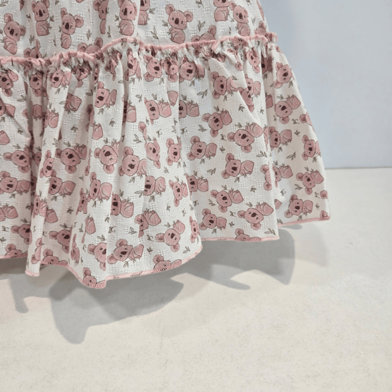 Vestido volantes tela estampada lazo koalas verano
